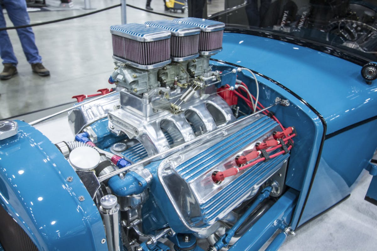 Many components of the car are original, including the body, turn signals, radiator cowling, and headlights. The rest of the vehicle was modified to retain the classic original appearance while adding in modern touches to make the car comfortable and reliable. The car was built from scratch with the exception of the previously mentioned components. Even the frame rails of the rod are custom.