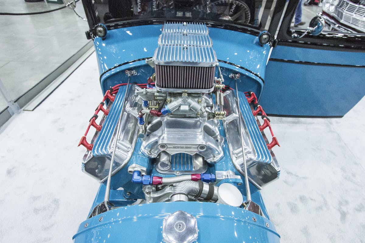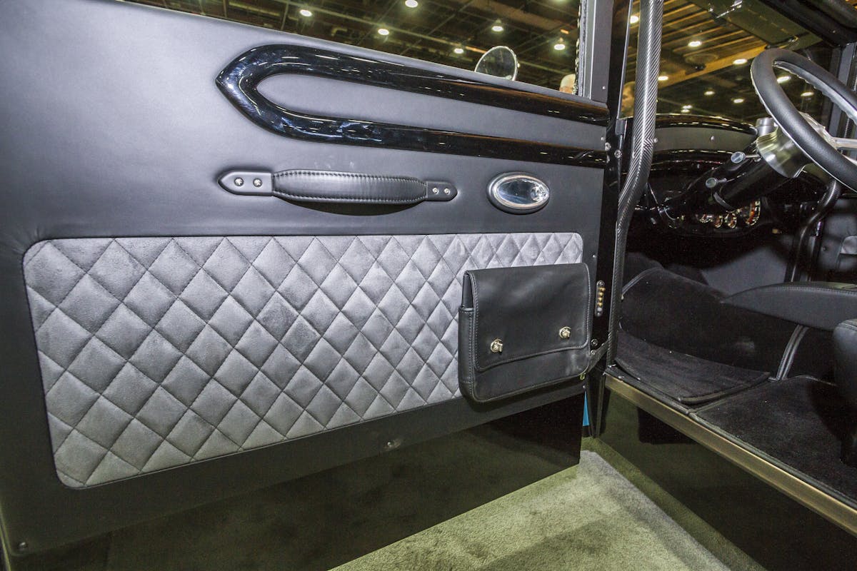 Many components of the car are original, including the body, turn signals, radiator cowling, and headlights. The rest of the vehicle was modified to retain the classic original appearance while adding in modern touches to make the car comfortable and reliable. The car was built from scratch with the exception of the previously mentioned components. Even the frame rails of the rod are custom.