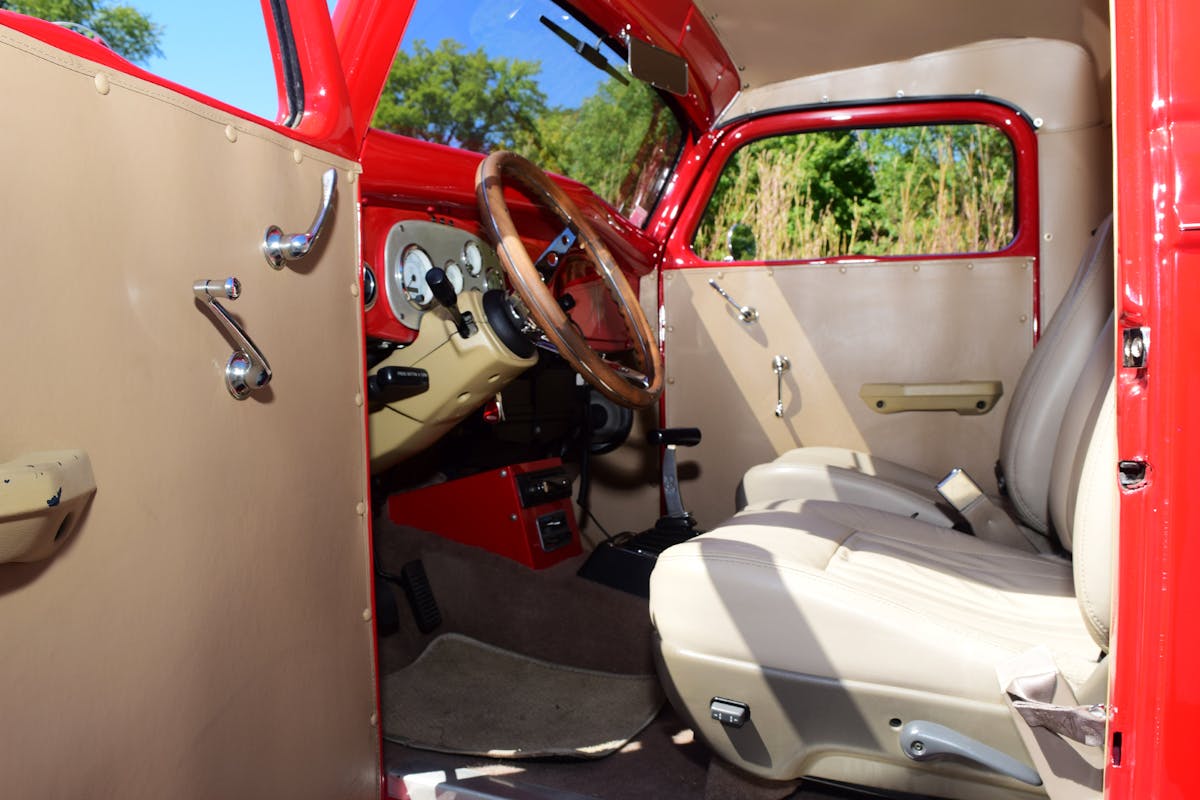 He is happy with the headliner and door panels, but decided to install a floor mount stereo system in the cab. “I drive too much with the windows down to listen to the stereo, so I just put in something basic,” he says.