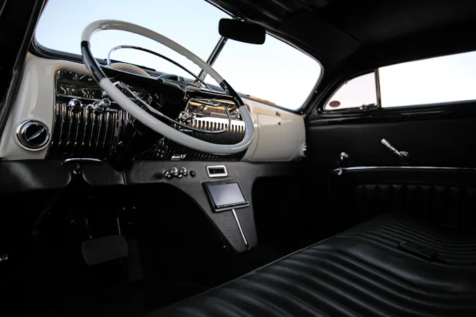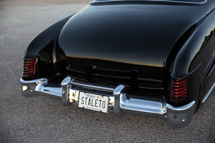 Rick needed just the right combination of exterior jewelry to give Staleto the look he wanted. “We found a 1953 DeSoto grille for the front and added custom-spliced ’54 Merc taillights to the tail-end. To enhance visibility, new LED lights were added to the mix. Headlights were frenched-in and all corners on the car softened,” he explained.