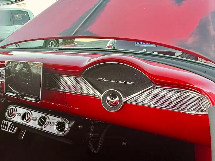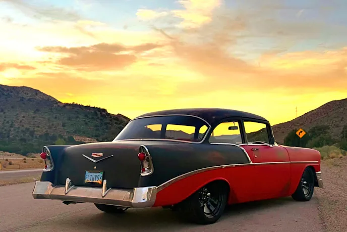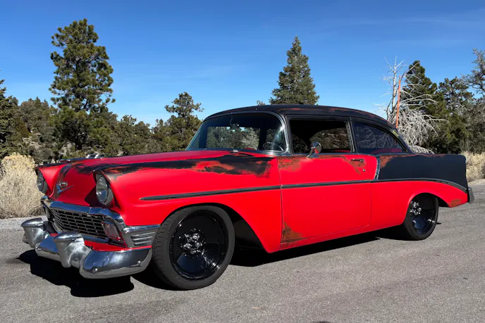 Scarce few cars have hit legendary status in automotive history like the 1956 Chevy. Sittin’ at the center of the Tri-Five Chevy era, the ’56 expanded on Chevrolet’s 1955 “The Hot One” advertising campaign. Chevrolet marketed the ’56 as “Even Hotter.” Its iconic profile is what caught the eye of Mike C. when he uncovered the restomod project version of his red-hot shoebox.