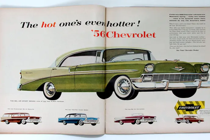 In 1956, Chevrolet gave customers multiple engine-transmission combos to choose from. Power on the low end came from the Blue-Flame 6-cylinder at 140-horsepower. Mid-range was the Turbo-Fire V-8 at 162-horsepower. And the high-end option was the Super Turbo-Fire V-8 with 205 horsepower.
