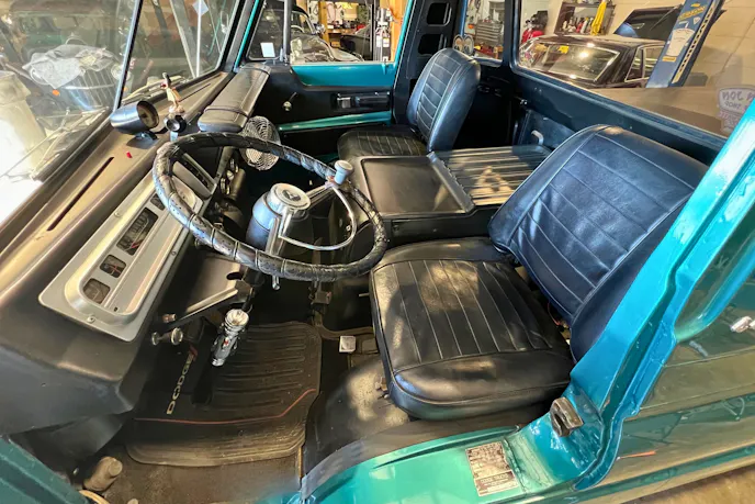 Thanks to its compact size, weight is roughly 3,200 lbs with the big-block V8. The cabover design means the driver and passenger sit over the front tires. Or as Tom says, you are first on the scene in a front-end collision.