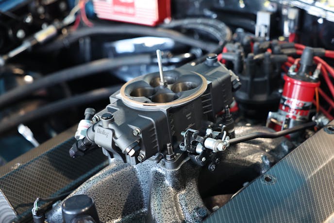 One thing you’ll notice under the steel NPD cowl hood is just how sanitary everything appears. He employed AN fittings not just for the fuel lines, but the coolant hoses, too. It had power steering from the factory, which he ditched when he installed the first big-block, but with the larger-than-stock rolling stock, he felt it was too hard to steer.