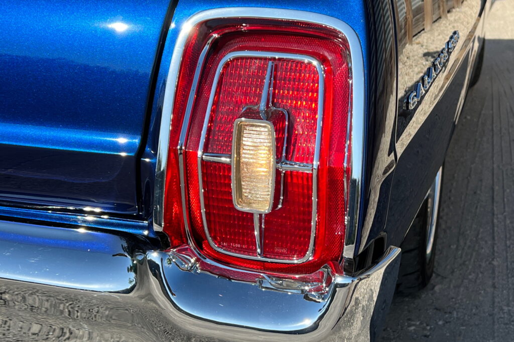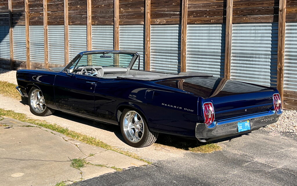 Most of the factory trim was removed to clean up the exterior. Only the Galaxie 500 nomenclature on the rear fenders was retained. The stock grille was chrome plated for extra pop and it really stands out with the deep, dark Kona Blue paint. In fact, all the chrome was redone. The bumpers were shaved and all the hardware is hidden