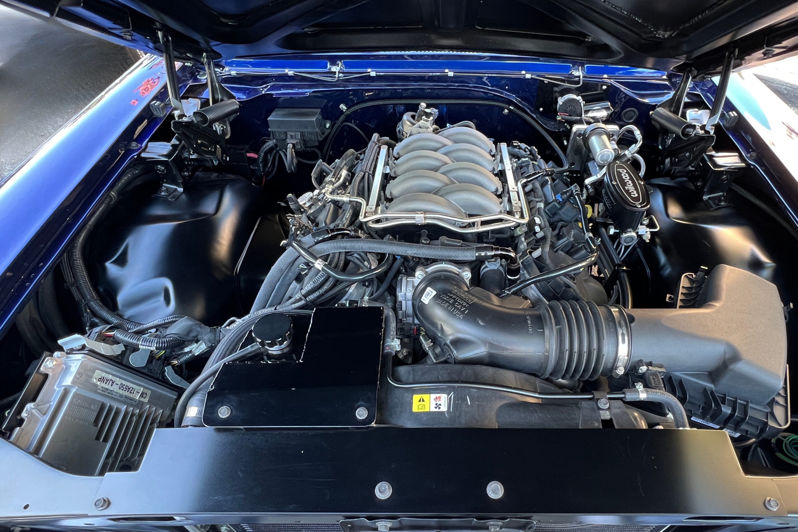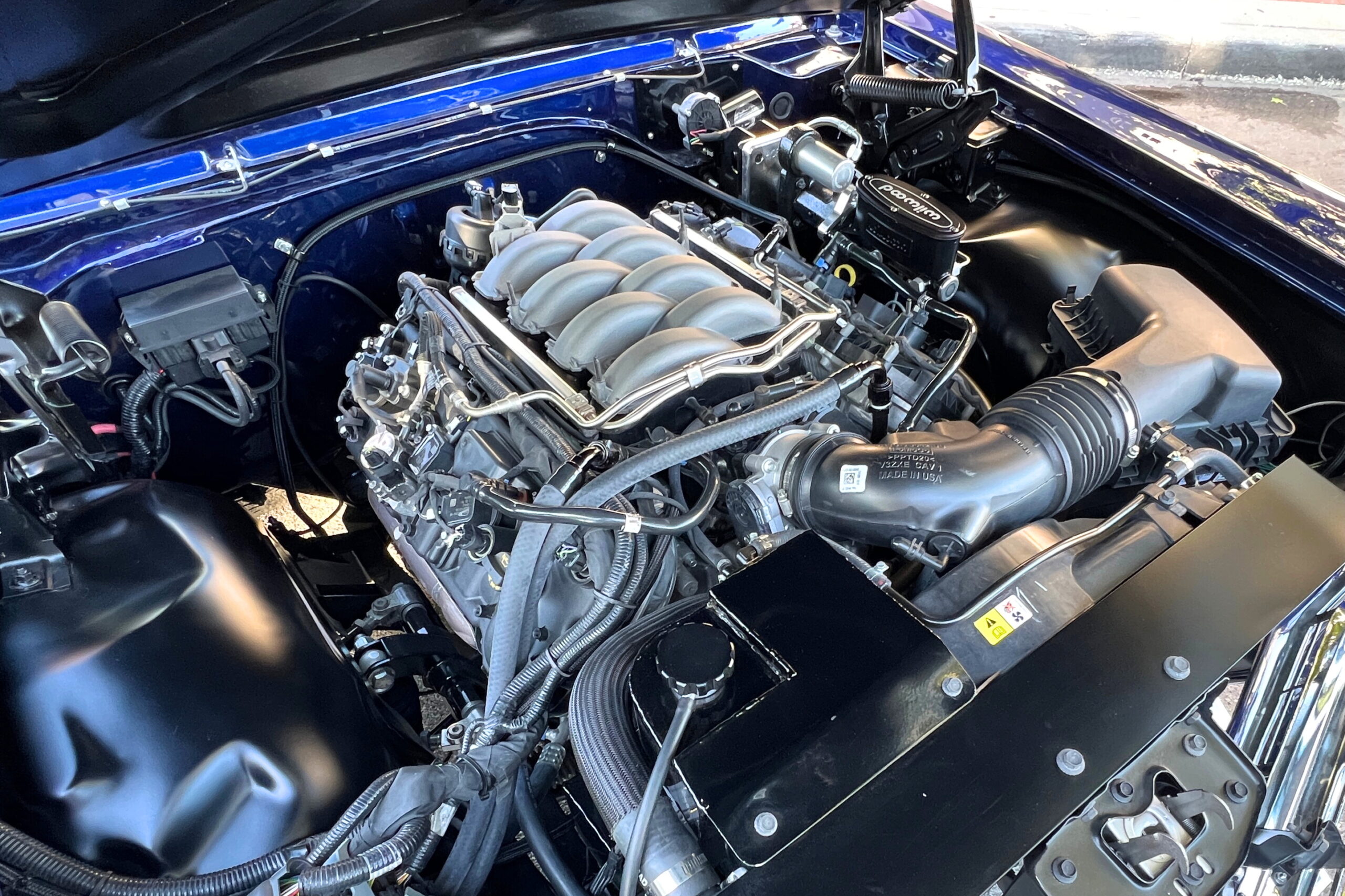 We hadn’t given this model much thought lately, so seeing this Kona Blue ragtop at a show recently really got our attention — especially when we caught a glimpse of that 5.0-liter Coyote engine under the long hood. This car was built by Sage Samuels and his crew at Realistic Auto Restorations in St. Petersburg, Florida, and it impressed us immediately.