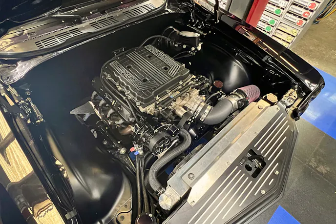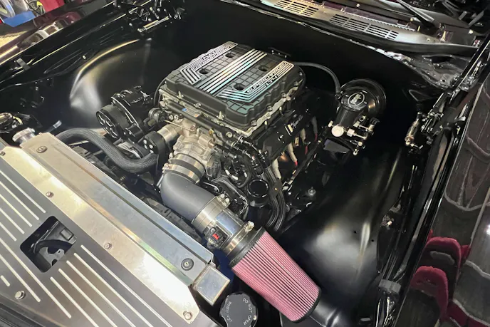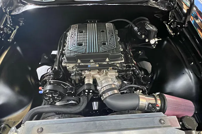 The Chevelle was the recipient of a Chevrolet Performance 6.2-liter LT4 Connect-And-Cruise powertrain swap. That means everything from the 650 net horsepower supercharged LT4 engine and eight-speed automatic transmission to the computers, harnesses, two O2 sensors, etc. was included per one part number. Insane torque — 650 lb-ft at 3,000 RPM comes at no extra charge. The blower checked off another box for the owner.