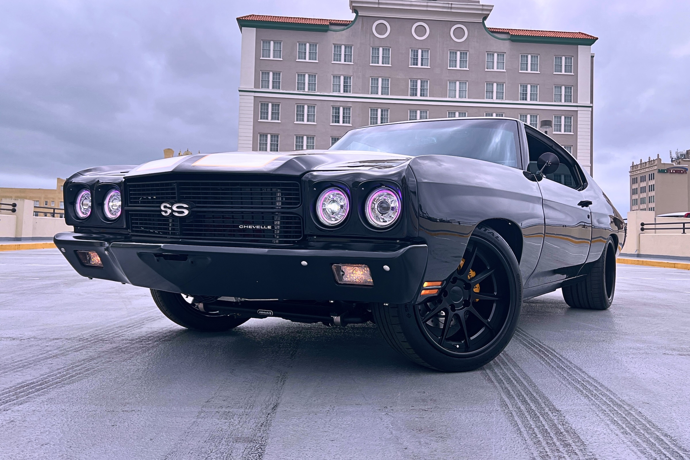 Harnessing all that power requires a chassis that knows what to do when the road turns or you have to stop. Ridetech got the nod for its Air Springs and Shocks at all four corners. There’s a four-link out back and full Ridetech tubular control arms up front.