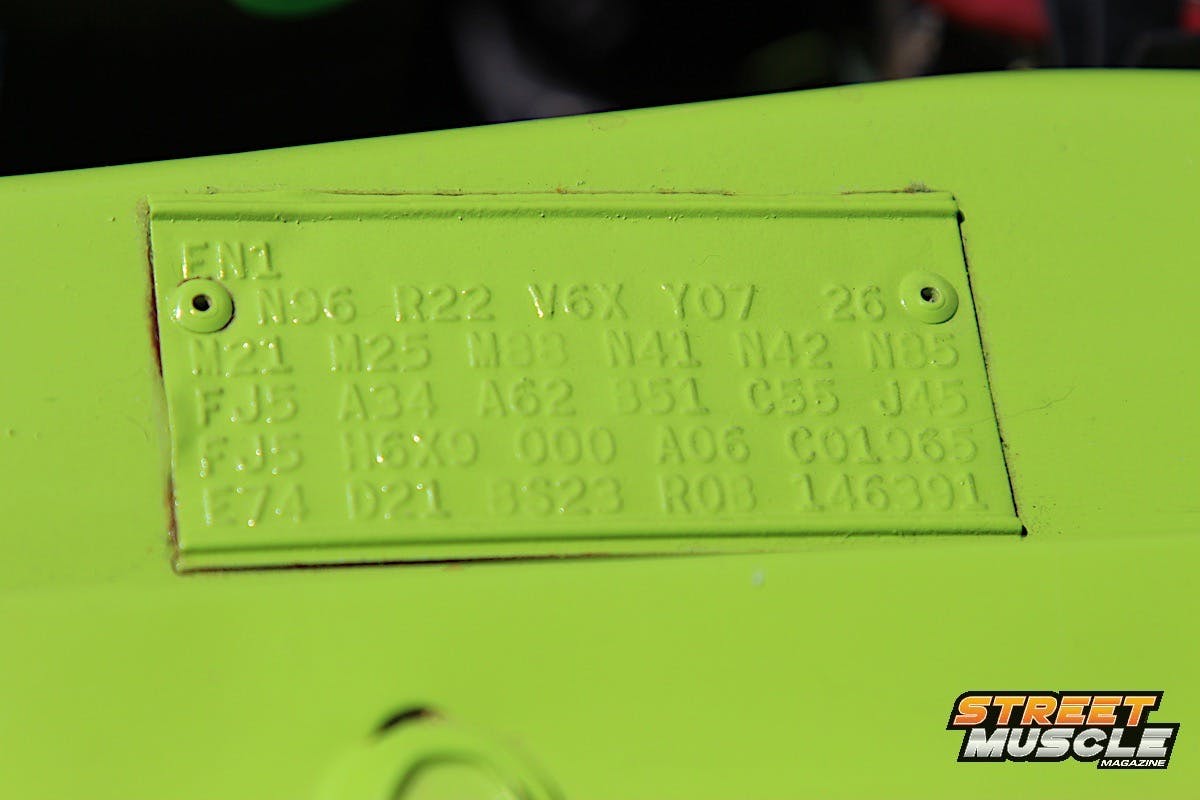 He’s included the VIN tag so we can all see just what this car is all about, and he tells us that it was the number four in line for Canada, and one of only 21 produced with the 4-speed transmissions, all of which have been verified by Galen Govier. There’s a score of codes that fit the ‘desirable’ list, and that most definitely includes the 8-bbl elephant under the hood.