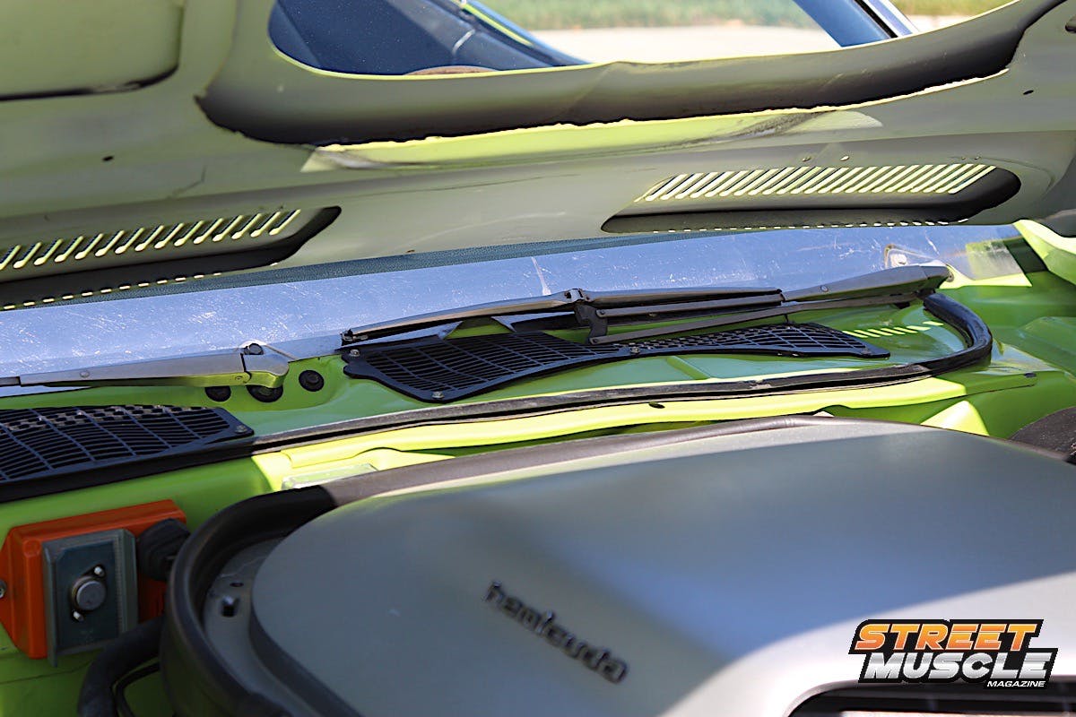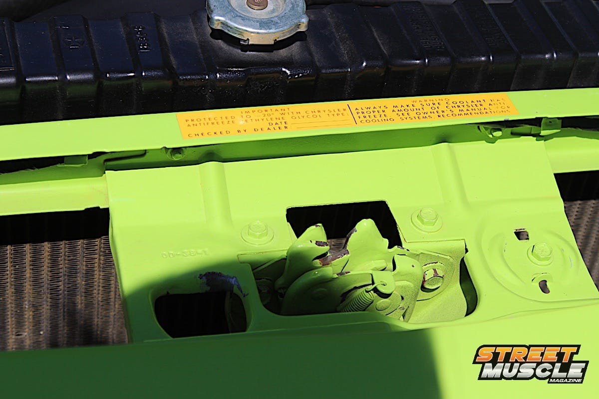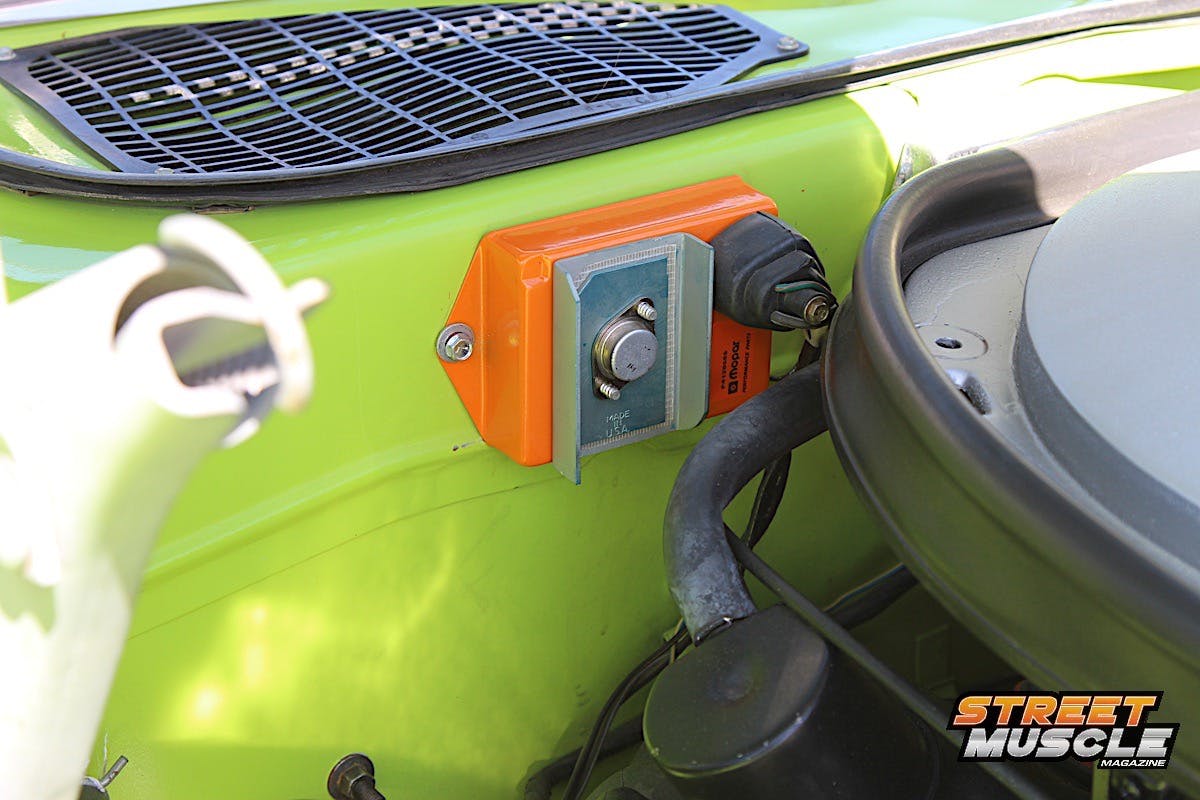 Inside the ‘Cuda, the interior has been redone, to look like it did originally, and on the glovebox door is a set of signatures from important people in the Mopar community. Tom Hoover, Tom Coddington, Mike Buckel, and Dave Rockwell each laid down their autographs. If those names sound familiar, it’s because they were on the team of the original Ramchargers (remember High & Mighty?). You’ve seen Tom Coddington’s name lately on the “Crate” for the new Dodge Challenger SRT Demon. Yep, same guy.