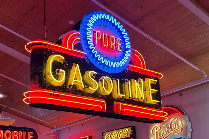 Pure Gasoline 7-Foot Flexlume Double-Sided Tin, factory Neon Sign: $320,000