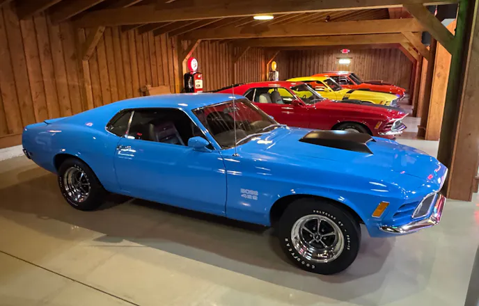 This Boss was offered at no reserve, and it brought sizeable dollar amount. It’s a numbers-matching machine ordered in October of 1969. In addition to the mighty engine, it has Grabber blue paint, black clarion knit/Corinthian vinyl bucket seats, 3.91 Traction-Lok, Top Loader 4-speed, Drag Pack, convenience group, electric clock, F60 tires, collapsible spare tire, rim blow deluxe steering wheel, console, power front disc brakes, power steering, AM radio, decor group, deluxe belts, competition suspension, tachometer, front air dam and trunk-mounted battery. It was sold with the original Kar Kraft order form, window sticker and Marti Report. In total, there were 859 original 1969 Boss 429s, and 499 Boss 429s for 1970.