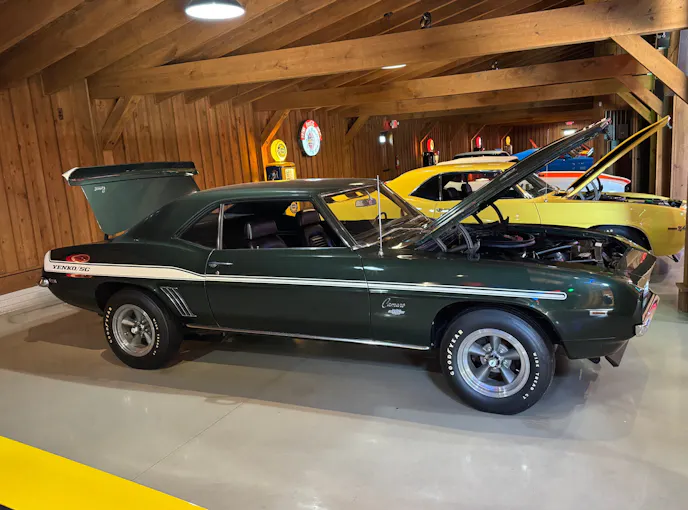 The name “Yenko” is a true attention getter in the automotive hobby, as it typically means a 427 lurks under the hood. That’s the case with this ’69 Camaro. As the first-gen Camaro entered its third model year, some performance-minded dealers, including Don Yenko, figured a way past Chevrolet’s corporate mandate of limiting 400-plus cubic inch engines from factory getting installed in factory-built Camaros, Chevelles, and Novas. Known as COPO (Central Office Production Orders), Chevy was able to assemble a limited run of factory 427 Camaros for 1969, and the Yenko Chevy franchise was on the cutting edge of making that happen. This great example has the 450 horsepower L-72 427 cubic-inch V8 engine and Muncie M-21 four-speed manual transmission with Posi-traction rear axle, J52 power-assisted front disc/rear drum brakes, heavy-duty front and rear suspension with leaf springs, and live rear axle. It’s an incredible all-original survivor with just 26,000 miles that has the legendary Yenko DNA and performance exclusivity. It’s just one of 201 Yenko Camaros produced for 1969, and one-of-57 painted Fathom Green. This COPO 9561 Camaro (L-72 427 iron engine) was delivered with a standard 4.10 Code BE 12-bolt live rear axle, heavy-duty suspension, and 14×7-inch stamped steel wheels with dog dish hubcaps. Also included was the ZL2 cowl induction hood, dual rear exhausts, Code 711 black vinyl bucket seat interior, and a 140-mph speedometer.