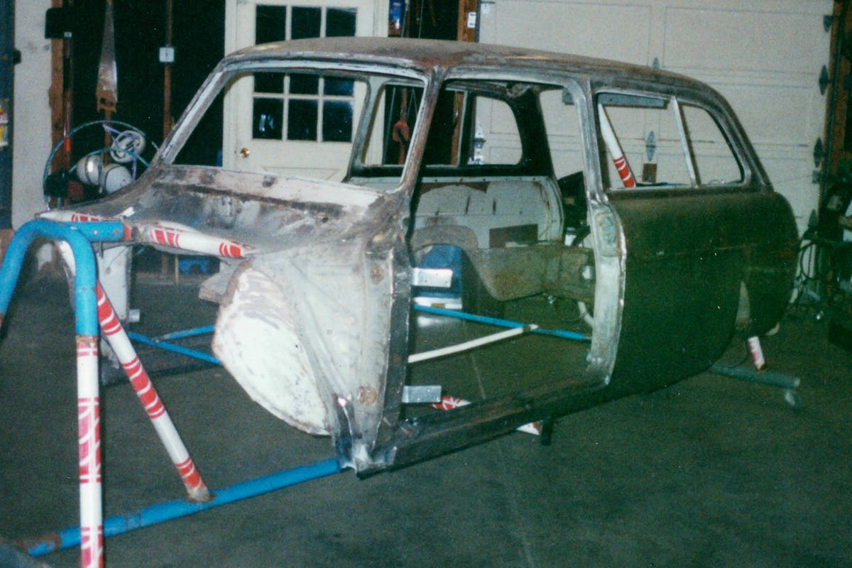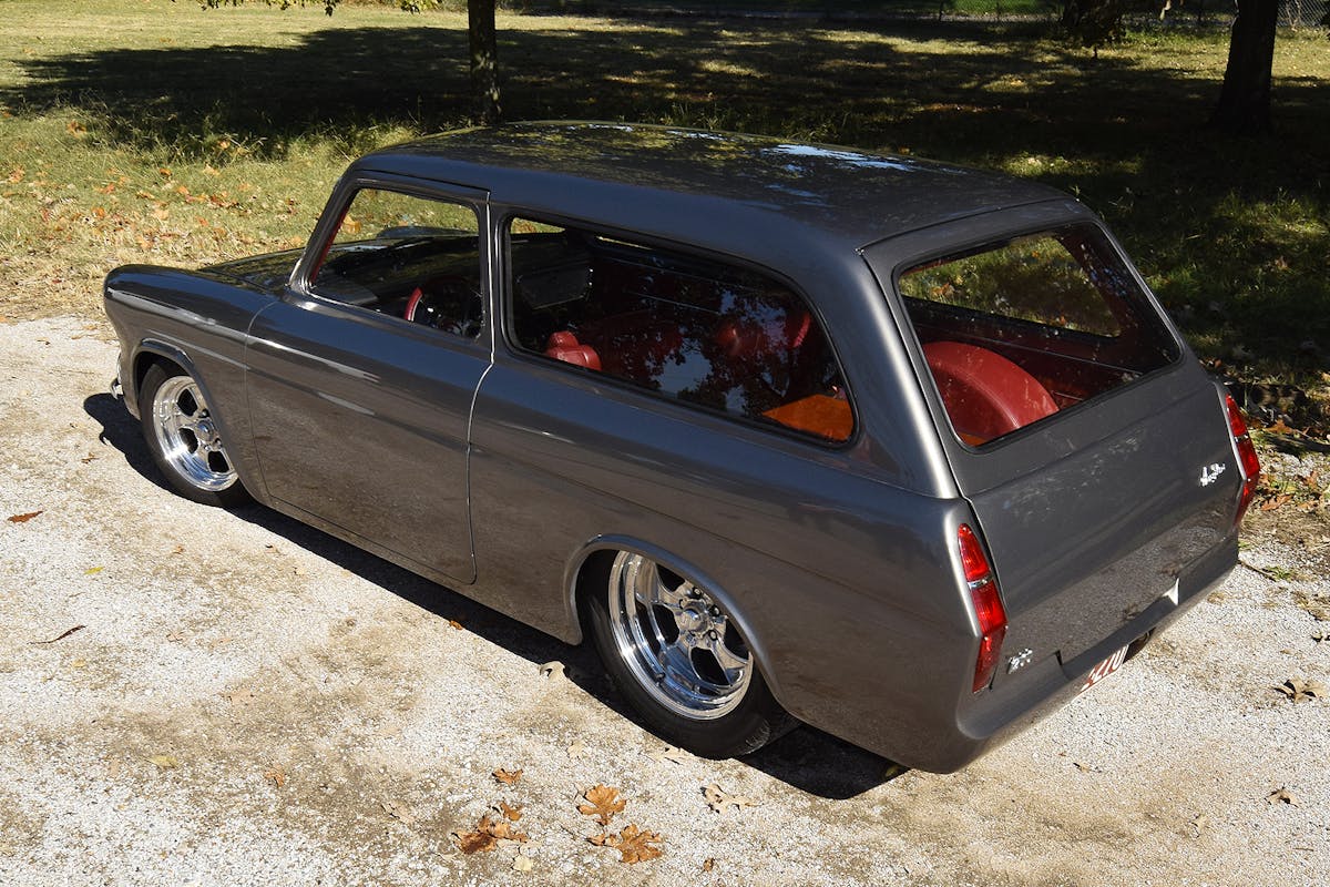 His concentration on body modifications shows when you walk around the car. All the drip rails along the wagon roof are shaved; a new floor pan was installed to work around a used set of Alston Race Cars 2×3 frame rails and 4-link rear suspension. He found out rusty metal from England can be tough to work with, but was patient and kept at it.