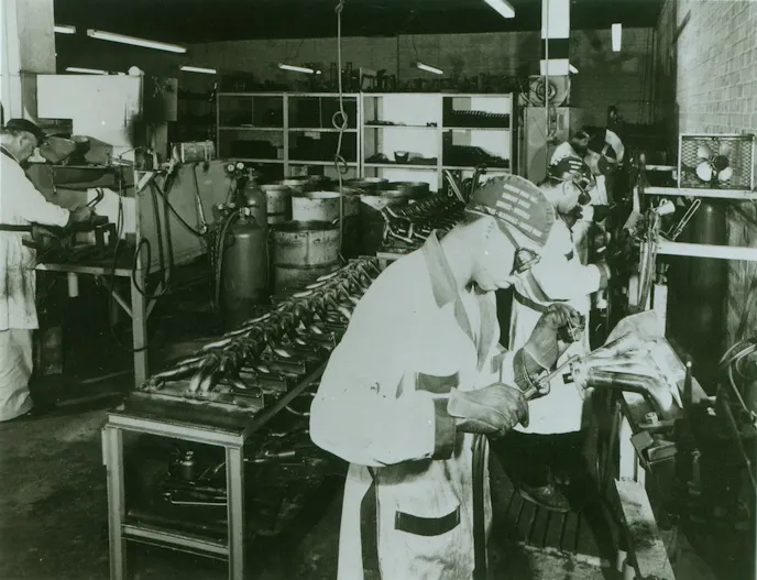 In 1954 Bob Hedman purchased the other half of Equaflow exhaust from Sandy Belond, and Hedman changed the name to Hedman Muffler and Manufacturing. With a startup crew of somewhere between eight and ten men, most of whom were skilled welders, Hedman’s shop was bustling and soon running two shifts.