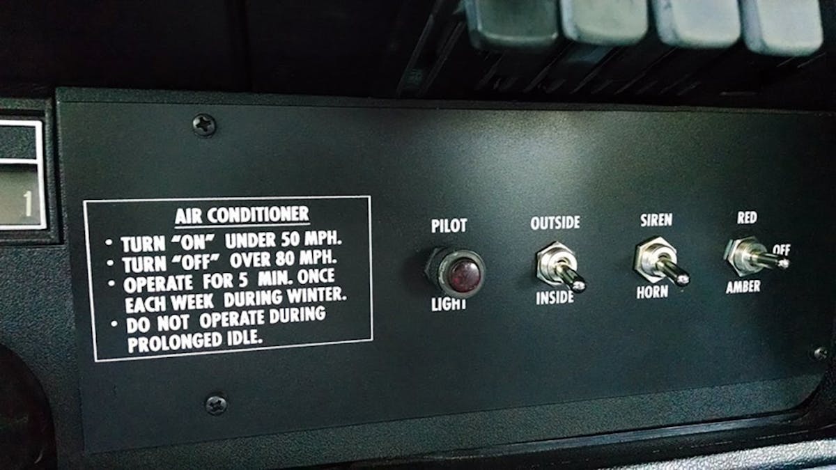 The interior was meticulously restored, including the CHP cars’ unique pearl white steering wheel (intended to cut down on burned fingers owing to the California heat), factory air-conditioning, and manual steering. The bench seats were covered in the original heavy-duty vinyl and cloth.