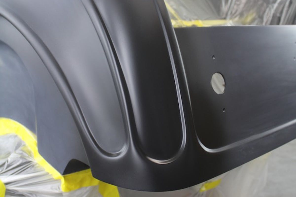 With the roadster’s body being original, Scott and Dowd didn’t want too many modifications, but there are enough finite details to see the improvements that were made to the car. In addition to straightening all the body panels and perfecting all the gaps, Dowd crafted a custom hood top and sides for the roadster, as well as a fresh rear roll pan.