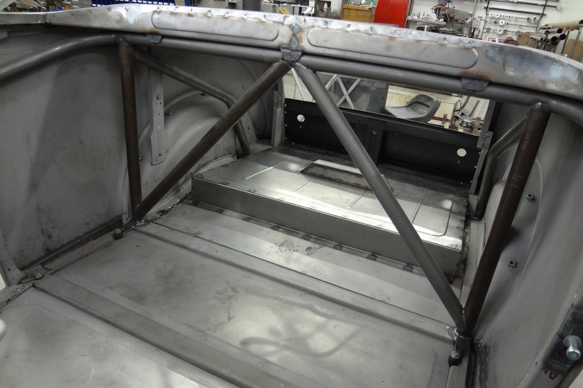 With the roadster’s body being original, Scott and Dowd didn’t want too many modifications, but there are enough finite details to see the improvements that were made to the car. In addition to straightening all the body panels and perfecting all the gaps, Dowd crafted a custom hood top and sides for the roadster, as well as a fresh rear roll pan.