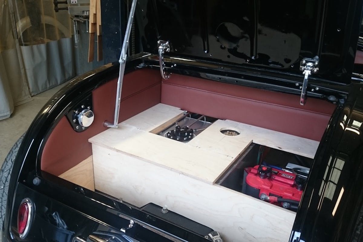 With the roadster’s body being original, Scott and Dowd didn’t want too many modifications, but there are enough finite details to see the improvements that were made to the car. In addition to straightening all the body panels and perfecting all the gaps, Dowd crafted a custom hood top and sides for the roadster, as well as a fresh rear roll pan.