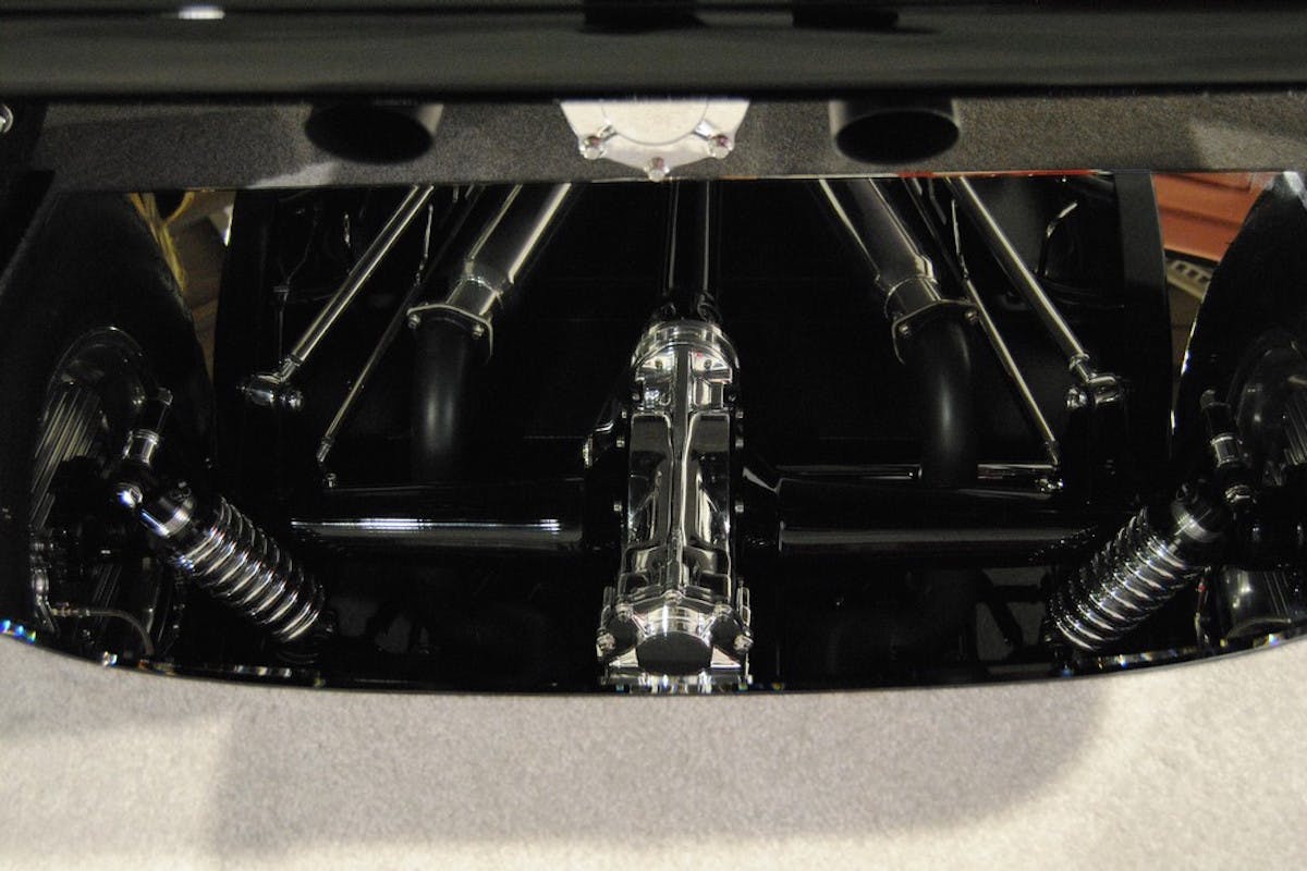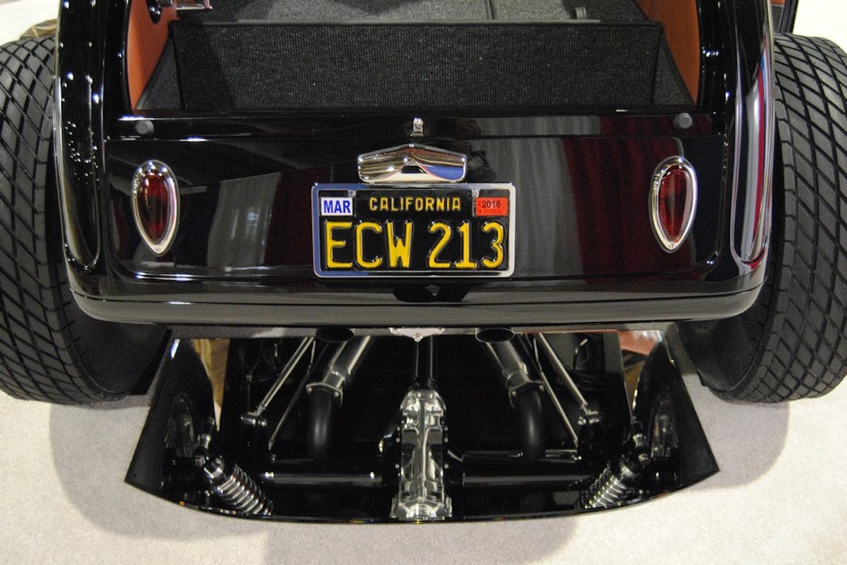 Backing the classic engine is a Ford automatic overdrive transmission, chosen for its driveability especially in California traffic, which pushes power to the pavement via a custom ASR driveshaft and the aforementioned Winters quick change rearend.