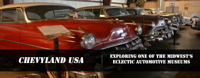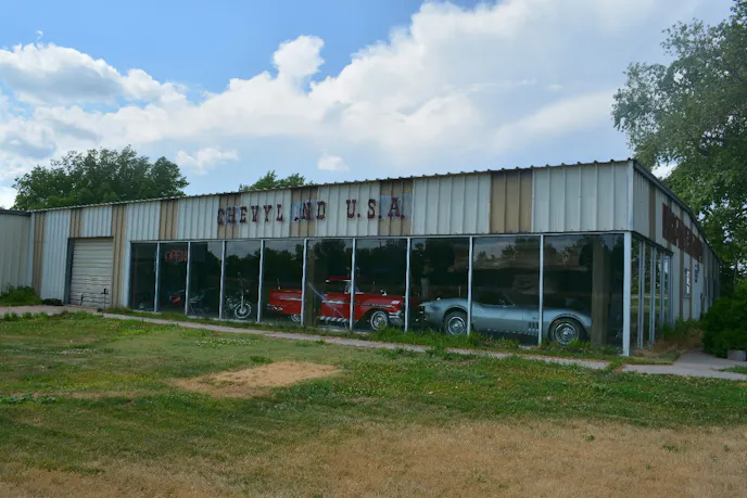 If you’ve ever taken the long drive across Nebraska on Interstate 80, you’ve probably noticed some things: corn fields, a lot of cows, and farms galore can be seen from the long expanse of road. You’ll also find a number of interesting and often quirky roadside attractions, including Fort Cody, the Great Platte River Archway, and the birthplace of Kool-Aid. But one roadside attraction you may have never seen or paid much mind to, sits in a large warehouse set off by itself on the north side of the interstate, just 13 miles West of the Kearney, the NE exit in Elm Creek. This little gem is known as Chevyland USA.