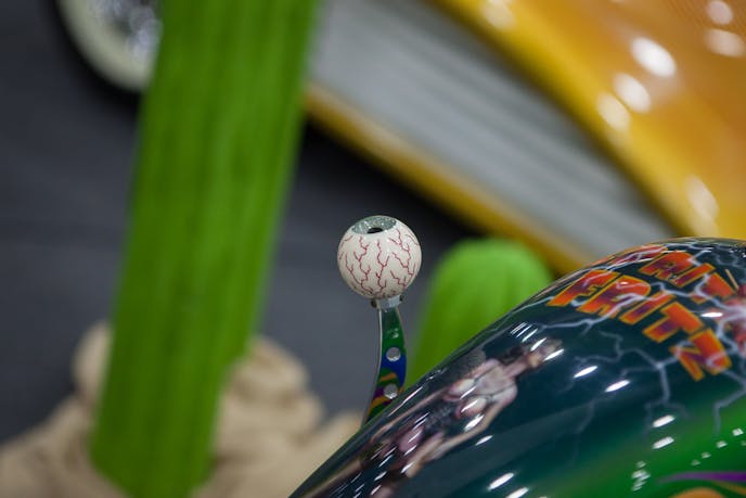 It wouldn't be a real show car in the tradition of the Rat Fink show cars without an eyeball shifter.