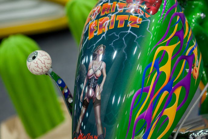 A smaller canvas didn’t slow down Fritz’ paint gun, and the number of paint tricks thrown at this bike is nearly equal to that of the Baja Bandeeto.
