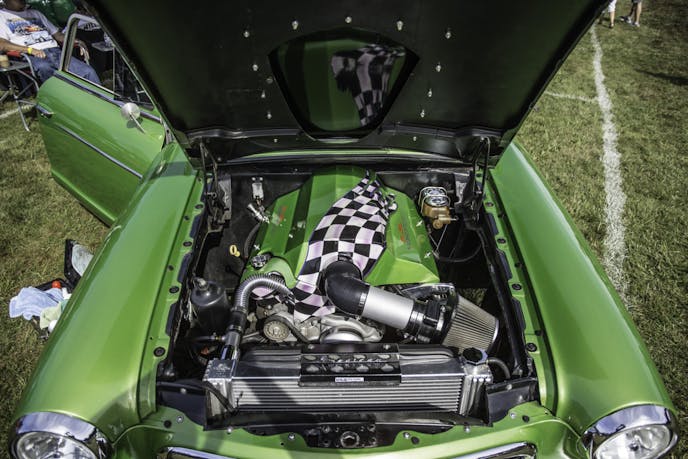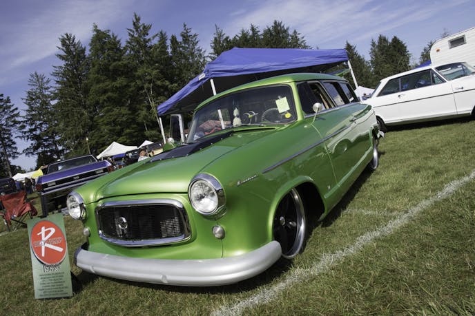 Pam knows the old song, and her display in front of the car shows a big red Nash emblem with the words “Beep Beep” going right across the center. “With this motor, that Cadillac would have never stood a chance,” she said. To add to the power of the motor, this Nash has been tubbed to allow for bigger tires and better road grip.