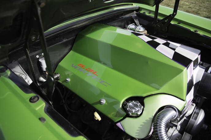 Anyway, let’s get back to where the car sits today. When Pam bought it, after the negotiations, it came with no engine so she put in a fuel-injected small-block Chevy 5.3-liter Vortec engine, a turbo-400 automatic transmission, and 3.42:1 geared positraction rearend. The build sits on an Art Morrison chassis with coilovers all the way around and disc brakes at every corner. “This thing was built it race,” Pam said, “But I just wanted a cruiser.”