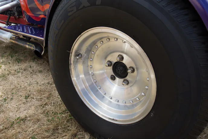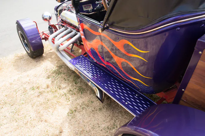 The bucket and running boards came to Jeff painted and he left them like that. Part of the character in a lot of these cars comes from the way they were left by a previous owner. Sometimes that character shows itself in the form of bullet-holes, patina, or strange modifications, in this case Jeff took the purple colored paint and ran with it. “They were painted back in 1984,” he explained. “So when I build the box and the fenders I panted them to match and used just a little more metal flake.”
