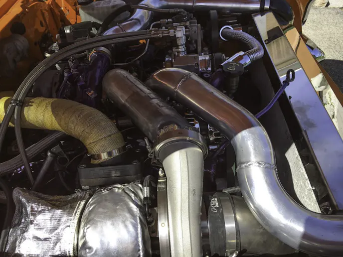 Walt will be installing a new Rossler transmission with billet drag-race parts that will be ready to handle up to 1,500 horsepower. At the same time, he is planning on using larger injectors to push the horsepower up to around 750 to 800, and the torque to around 1,300 lb./ft! “Unbelievably, I’m getting around 30 mpg on the highway if I can keep my foot out of it,” Walt explained. “If not, 15 mpg running it hard!”