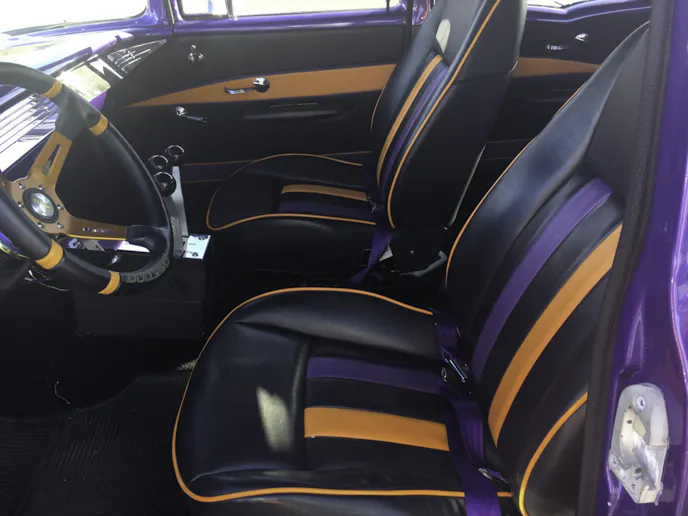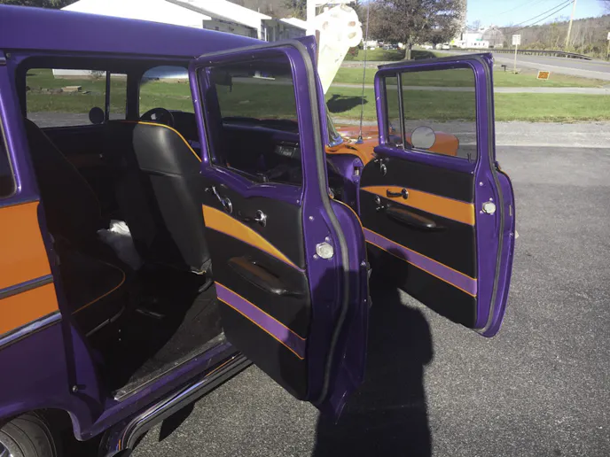 Along with the significant engine and transmission changeover, Walt knew he was going to need a much stronger rearend, so he went with a Moser M9 with a Wavetrac positraction, 2.91 gearing, and 35-spline axles. The complete drivetrain is an impressive setup for a 1957 Chevy wagon, and one that you’d likely never expect. If it weren’t for the overt color combination on this car, there is no way you’d expect such an aggressive powerplant. The change would be obvious, however, once he starts it and you feel that rumble deep down in your chest from the diesel powerplant.