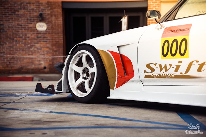 One of the most challenging aspects of the build was achieving a functional, but aggressive wheel fitment that would not destroy the front and rear fiberglass fenders or result in wheel-rub on track.