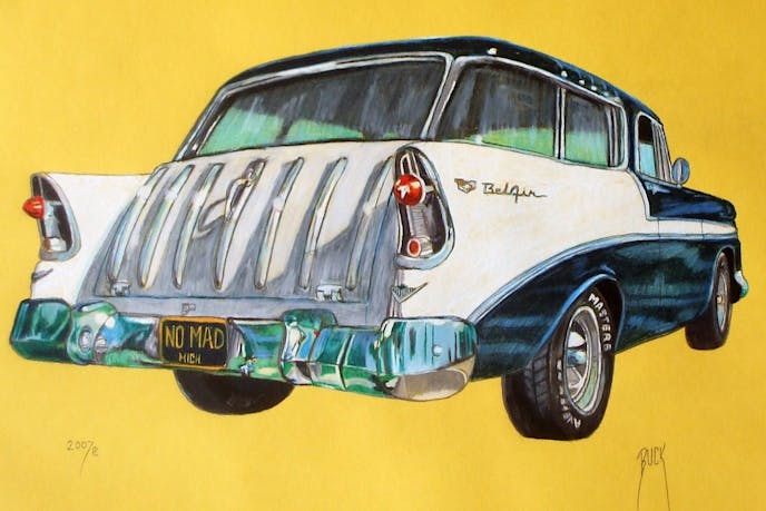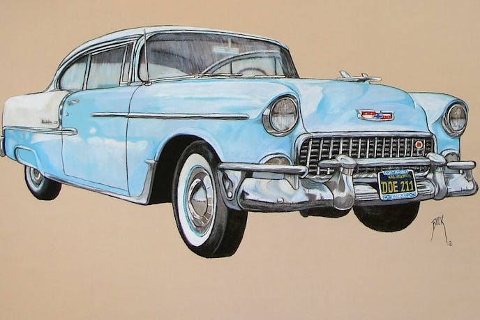 Scott E. “Buck” Buckmaster: I got into art when I was young. I was always drawing and doodling. At three I was building three-dimensional multi-floored houses out of paper and masking tape. Initially, I went to college at General Motor’s Institute of Engineering and Business Management (now Kettering) to go into Mechanical Engineering, but my math skills were not up to par so I had to leave. I then went back to school to get my degree for teaching to my strengths, art and English. It was a student of mine, who requested a piece of artwork for her to give to a relative as a special gift that sparked the initial interest in vehicle portraiture.