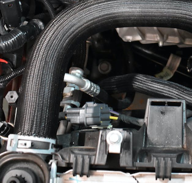 9. Remove the large grey wiring connector, for the fans, found on the passenger side of the shroud. Then the fan and shroud assembly will pull right up and out.