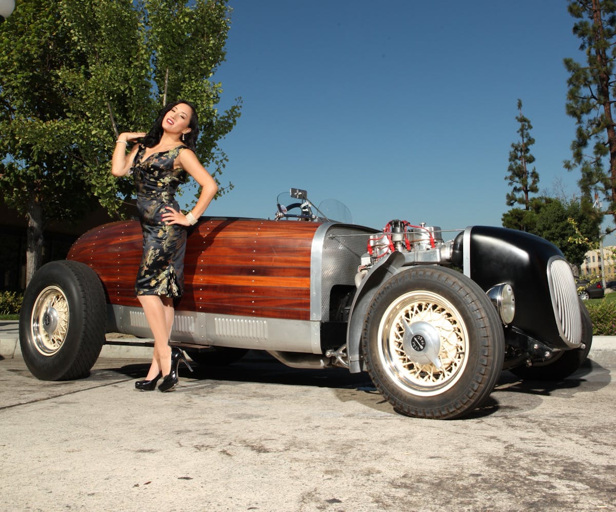 My biggest modeling gig would be shooting and sitting inside the classic Hirohata Merc. My second feature with Mitzi for the cover of Classic and Kustom Bombs Magazine was awesome too. The shoot was to take place at the Petersen Museum. I nearly died when I found out it was with the original Hirohata Merc and I was to be to the first pinup to not only shoot with this classic car but also at brand new museum as well.