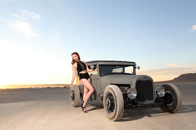 Happy Holidays! As we draw close to ringing in the New Year we bring you our final Babe of the Month for 2017. The lovely Rina Bambina is our first international pinup model, and she resides in Germany. Rina spent the last two months visiting the US with most of her time in California. We had plenty of sunshine for her to enjoy while site seeing as well as amazing sunsets for photo shoots. Rina was able to enjoy a day out at El Mirage with me for their final race meet in November, as well as the all new TailgateTruck Show at the Automobile Driving Museum in El Segundo. Before heading home Rina attended the final Mooneyes Xmas Party at the Irwindale Speedway. She has returned home to Germany just in time to enjoy the holiday season with family and friends.