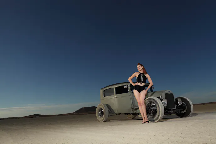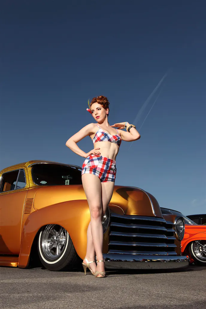 Happy Holidays! As we draw close to ringing in the New Year we bring you our final Babe of the Month for 2017. The lovely Rina Bambina is our first international pinup model, and she resides in Germany. Rina spent the last two months visiting the US with most of her time in California. We had plenty of sunshine for her to enjoy while site seeing as well as amazing sunsets for photo shoots. Rina was able to enjoy a day out at El Mirage with me for their final race meet in November, as well as the all new TailgateTruck Show at the Automobile Driving Museum in El Segundo. Before heading home Rina attended the final Mooneyes Xmas Party at the Irwindale Speedway. She has returned home to Germany just in time to enjoy the holiday season with family and friends.