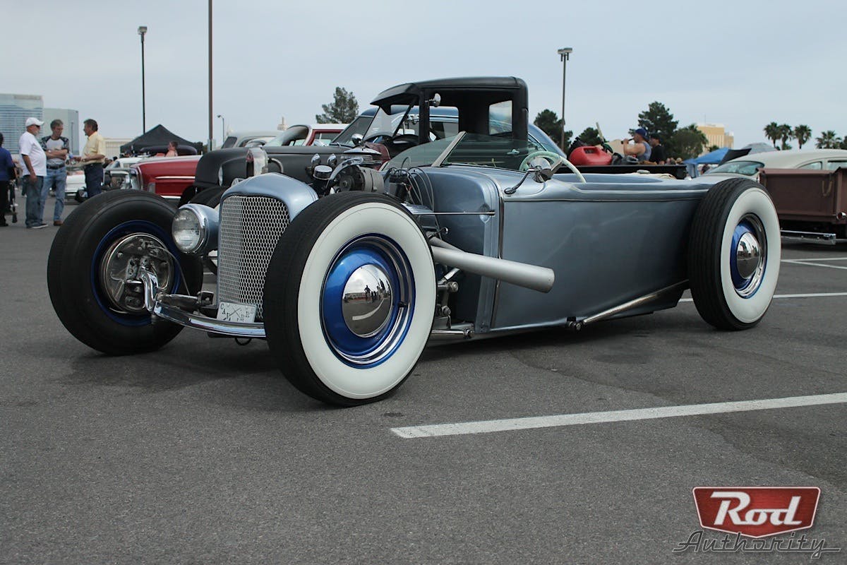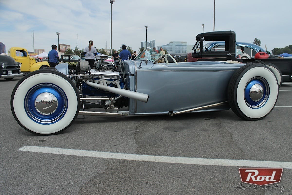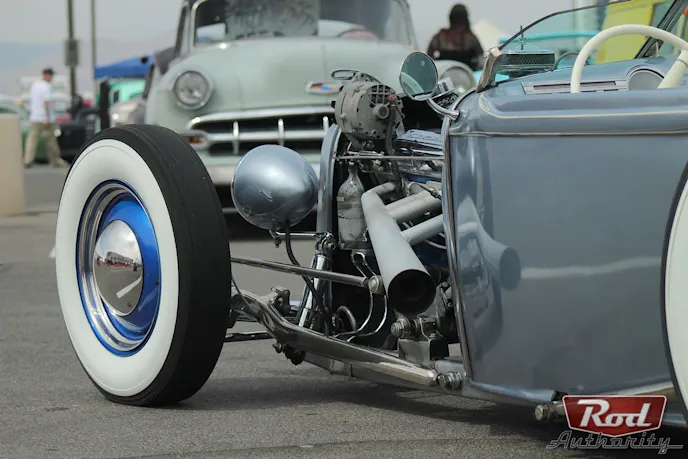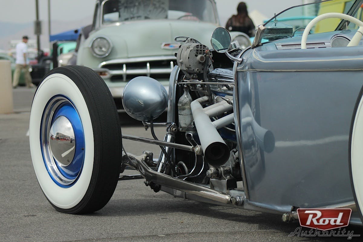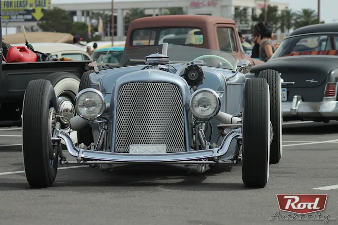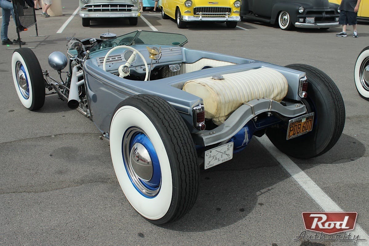 Aladdin had sourced the 9-inch from a 1959 Edsel and according to him it’s running a gear ratio of 2.77. With gearing like that, it’s no wonder Aladdin was more than obliged to drive the roadster over 500-miles roundtrip from Long Beach to Las Vegas with nothing more than his club’s clicker coat to protect him from the elements.