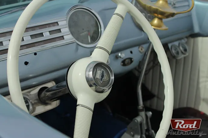 “I built this car twice, once because it was completely wrecked in an accident. I didn’t want this car originally–Rick, the president of the club and my buddy told me that he’d found a cowl and four-door Chevy at the swap meet–I was looking for a coupe at the time. Rick actually bought the car for me as a Christmas present,” Aladdin told us.