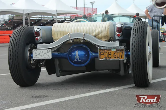 Aladdin had sourced the 9-inch from a 1959 Edsel and according to him it’s running a gear ratio of 2.77. With gearing like that, it’s no wonder Aladdin was more than obliged to drive the roadster over 500-miles roundtrip from Long Beach to Las Vegas with nothing more than his club’s clicker coat to protect him from the elements.