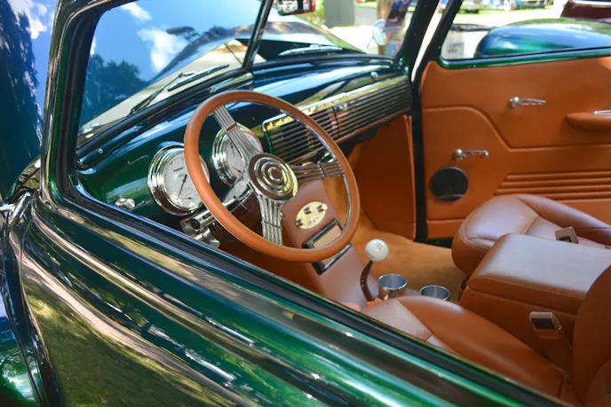 An electronic push-button starting gives the driver more modern starting power, while present-day amenities such as power windows, GPS, satellite radio, cruise control and air conditioning make for a cushy ride by any standard. Of course, there’s something to be said about the interior looking classically sharp while providing and disguising (some of) these creature comforts.