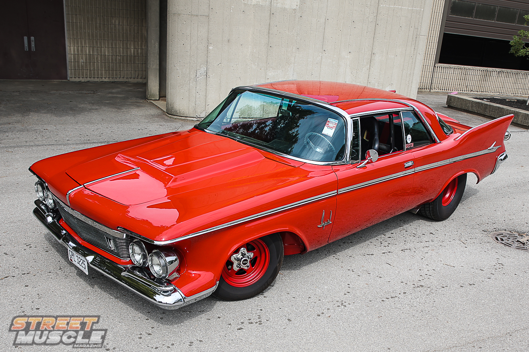 Street Muscle was on the ground at Goodguys in Columbus, Ohio and our heads almost swiveled off our bodies looking at all the cool cars that showed up. There are so many fantastic rides that trundled in, that it takes a pretty unique car to sear into our memory. When we laid eyes on Randy and Carol Ransbottom’s screaming red 1961 Imperial Crown Coupe Pro Street cruiser we were determined to bring you back the story.