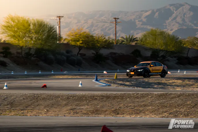 Thermal’s race track features two long straights that allow the M cars to reach speeds up to 145 mph before drivers brake hard down to 2nd gear on the main straight and 3rd gear into a double apex left-hander coming off the second long straight.