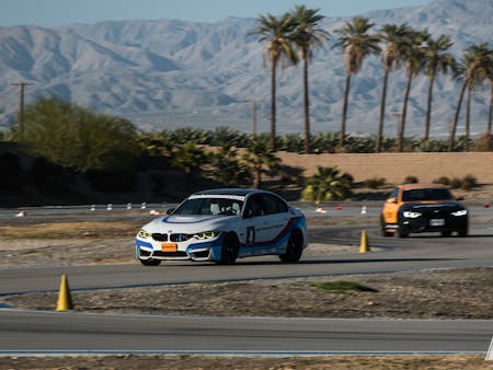 Thermal’s race track features two long straights that allow the M cars to reach speeds up to 145 mph before drivers brake hard down to 2nd gear on the main straight and 3rd gear into a double apex left-hander coming off the second long straight.