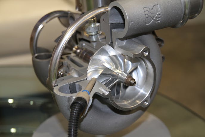 “Our new S200 SX-E, for example, is rated from 300 to 550 horsepower. How we get that rating is by how much airflow the compressor will support. The typical 550 horsepower capable unit will flow 55 pounds per minute.” The new E series turbos range in power enhancement from 300 to 1500 horsepower. The applications can vary from a 2.0 liter four cylinder gas motor to a large diesel.