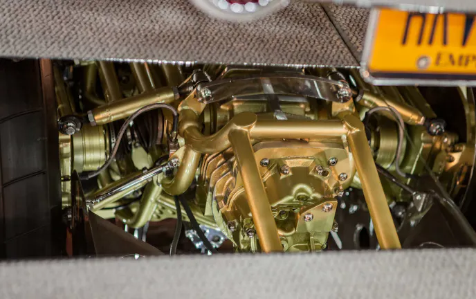 Bathed in gold paint and other sparkly bits, the motor would be a show stopper under the hood of any car.