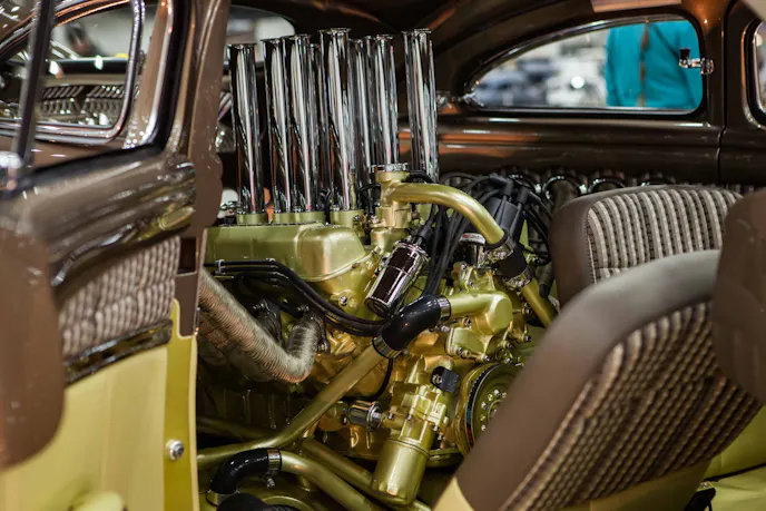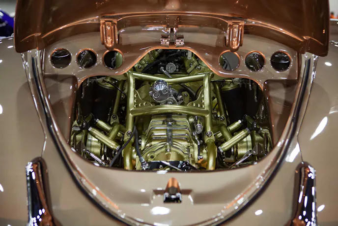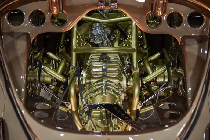 Bathed in gold paint and other sparkly bits, the motor would be a show stopper under the hood of any car.