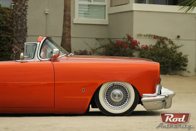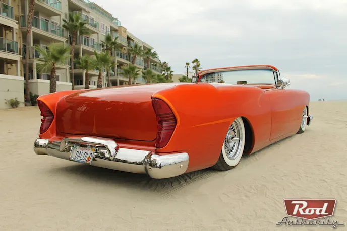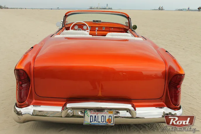 Upon closer inspection we found the badge of renowned builder, Oz Welch of Oz Kustoms adorning the fender panel of Brent’s ’54–this was the one car that had us stopping and staring during the Temecula Rod Run, and we certainly weren’t alone amongst the droves of event attendees flocking and inspecting every detail. From custom Lincoln taillights and a convertible conversion to the pearl white interior and smoothed body–this vehicle embodies the spirit and potential that lies within every kustom project.