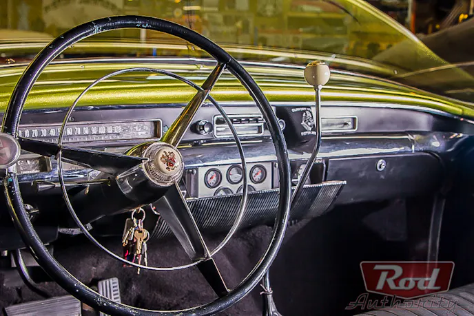 With all of the work underneath, it would be easy to miss some of the key details inside and outside the car. The Desoto grill is one choice that stands out. “I built a car I wanted to drive. There are some people who don’t like certain choices I made, and that’s okay. I built it to be what I wanted and I’m really happy with it. Plus, I did all of the work myself. Everything from plumbing the suspension to the paint was done by me. I would rather do it myself and just figure it out. Then I know how it works, and if I want to change something I can,” Kevin said.